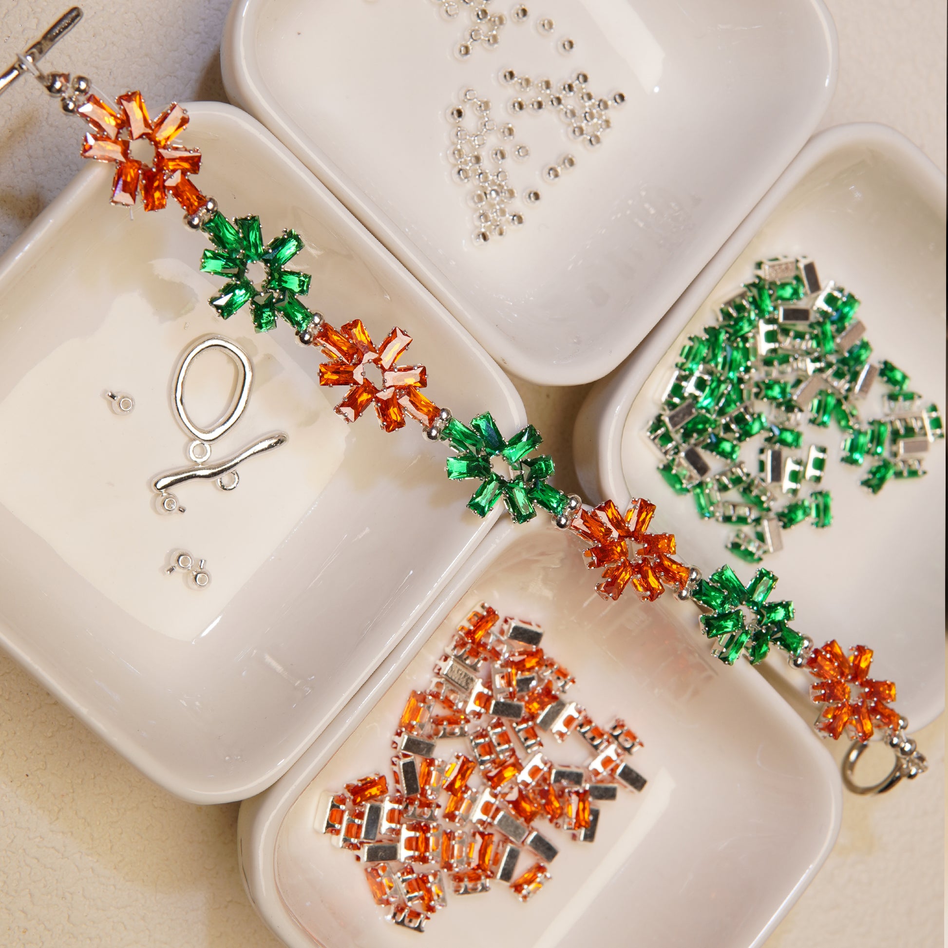 Premium materials for an 8-inch bracelet (including wire, clasp, spacer beads, and decorative cubic zirconia beads with claw settings as shown).